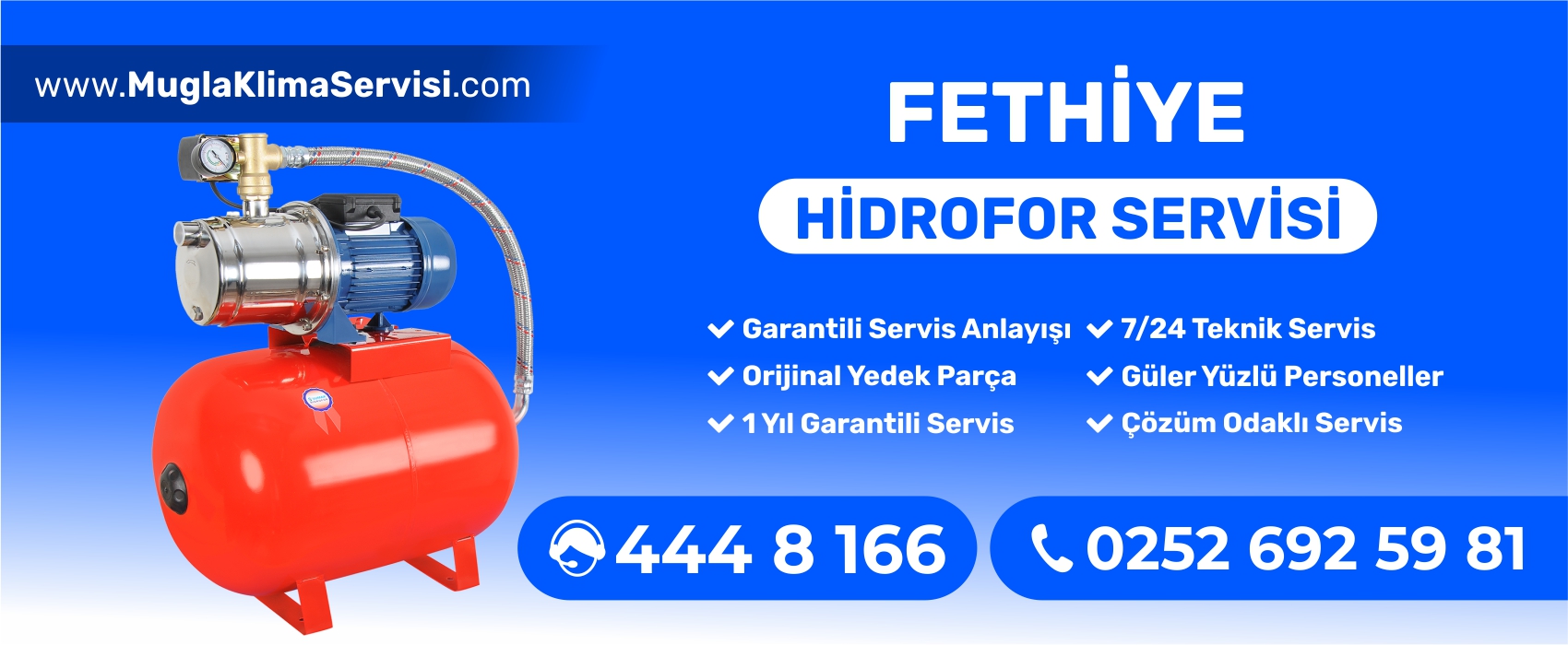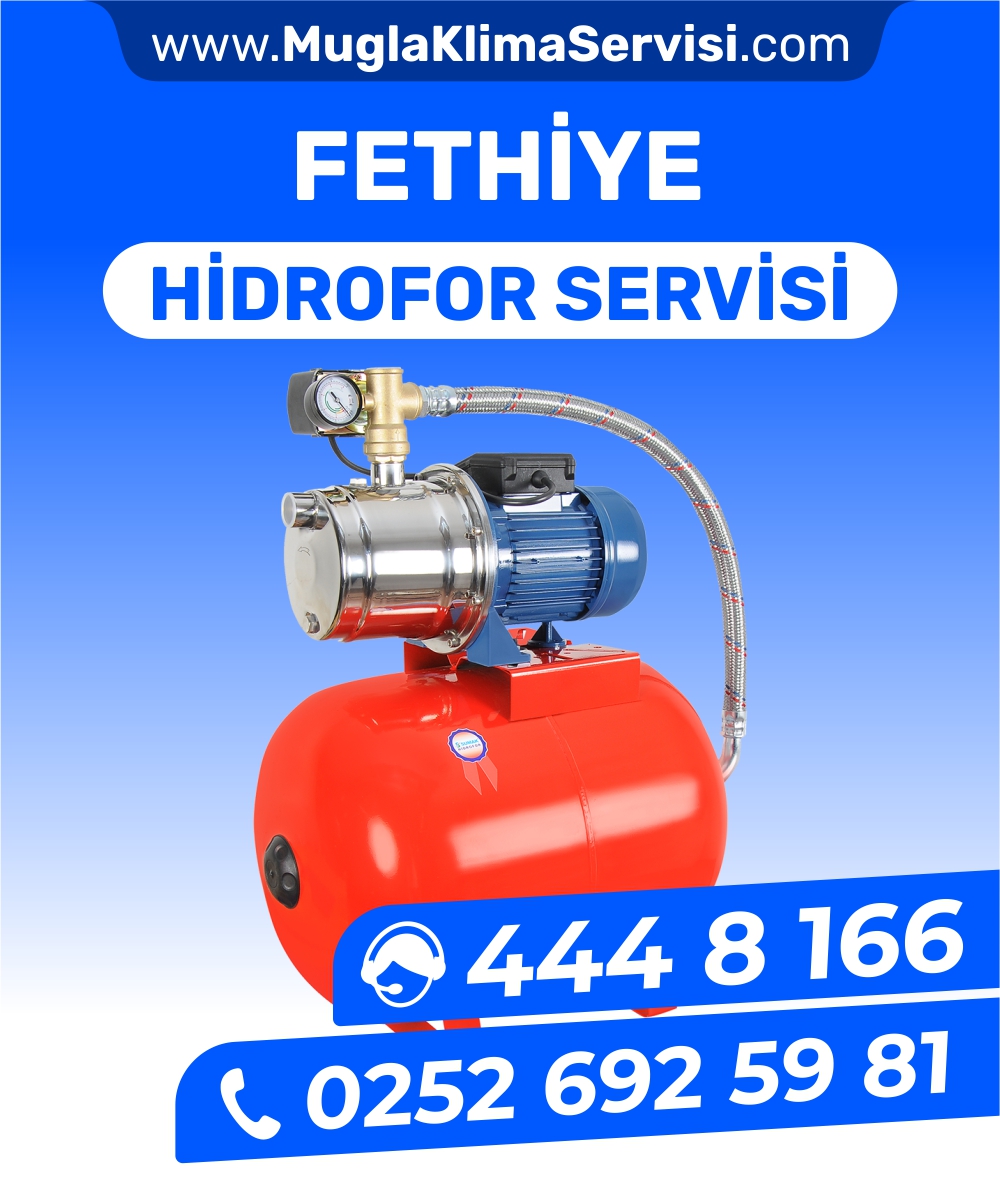Fethiye hidrofor servisi binalarda dairelerde müstakil villalarda site ya da yüksek binalarda şebeke su basıncının yeterli gelmediği zamanlarda basınçlı su ihtiyacını hidrofor montajı yaparak ihtiyacını karşılar. Hidrofor motoru elektrik ile çalışır musluklardan akan suyun basıncını artırmaya yarar. Bir genleşme tankı vardır ve bu tank yardımı ile şebeke suyunun yetmediği yerlerde su basmak amacı kullanır. Hidrofor direk şebeke suyuna bağlanır beraberinde direkt olarak şebeke hattını da bağlanabilir. Fakat şebeke hattının bağlanması durumunda sular kesildiği zaman hidroforun bir yararını göremezsiniz.