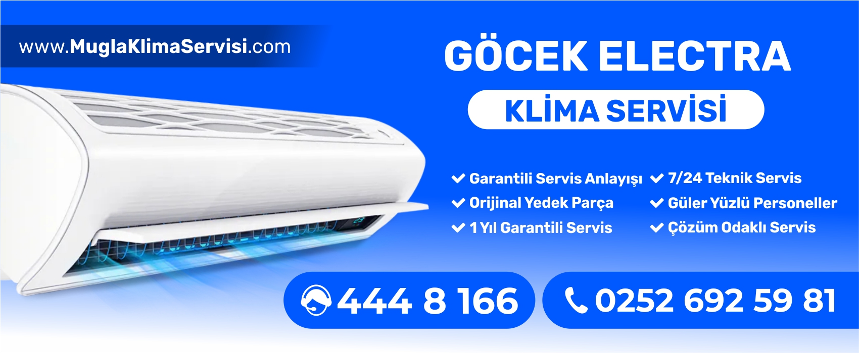 Muğla Klima Servisi Sonrası Hizmetler için 444 8 166 veya 0252 692 5981 numaralı çağrı merkezlerimizi arayarak bizlere ulaşabilirsiniz.
